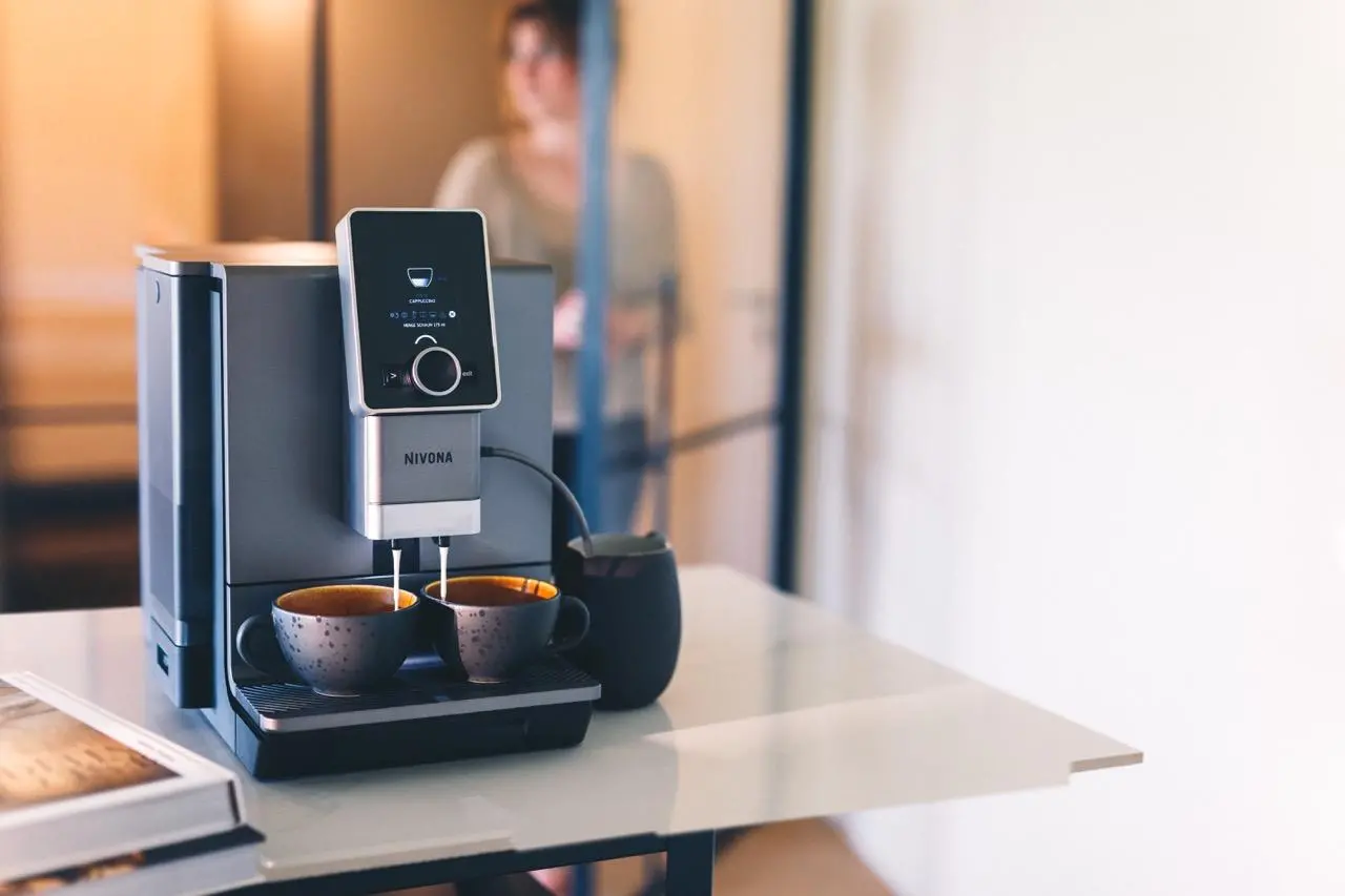 NIVONA 930 – inteligentny ekspres ciśnieniowy z wykończeniem tytanowo-chromowym, który łączy nowoczesny design z technologią Aroma Balance, Bluetooth i OneTouch Spumatore Duo. Przygotuj 9 specjałów kawowych z łatwością i stylem – w domu lub biurze.