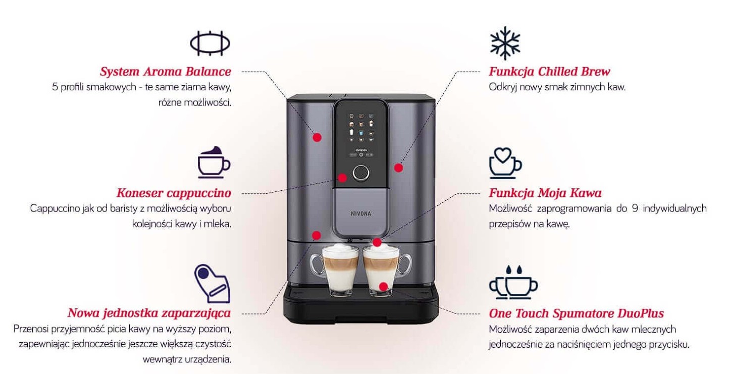 NIVONA NIVO 8107 to więcej niż ekspres – to osobisty kreator kawowych doznań. Zaprojektowany z myślą o najbardziej wymagających użytkownikach, łączy niemiecką precyzję, inteligentne funkcje i nowoczesny design, który przyciąga wzrok i buduje prestiż Twojej kuchni lub biura.
