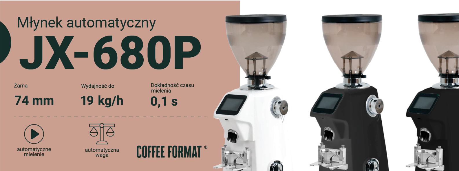 Oprócz zaawansowanej technologii i solidnej konstrukcji, młynki Coffee Format wyróżniają się również dopracowanym designem. Producent oferuje trzy uniwersalne warianty kolorystyczne, które z łatwością wpiszą się w estetykę zarówno nowoczesnych kawiarni, jak i klasycznych wnętrz restauracyjnych.